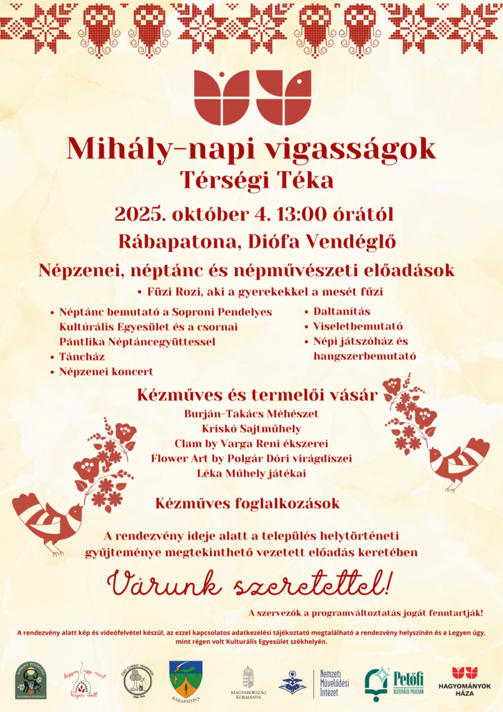 Mihály-nap Rábapatonán Minden jog fenntartva © 2025 Soproni Pendelyes Kulturális Egyesület | Készítette: Schubert Dávid