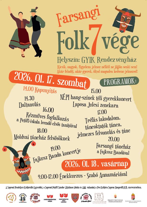 Farsangi Folk7vége Sopronban – a Soproni Petőfi Sándor Általános Iskola és AMI és a Soproni Pendelyes Kulturális Egyesület szervezésében!